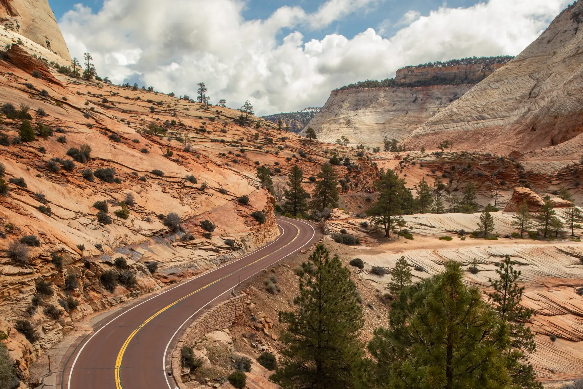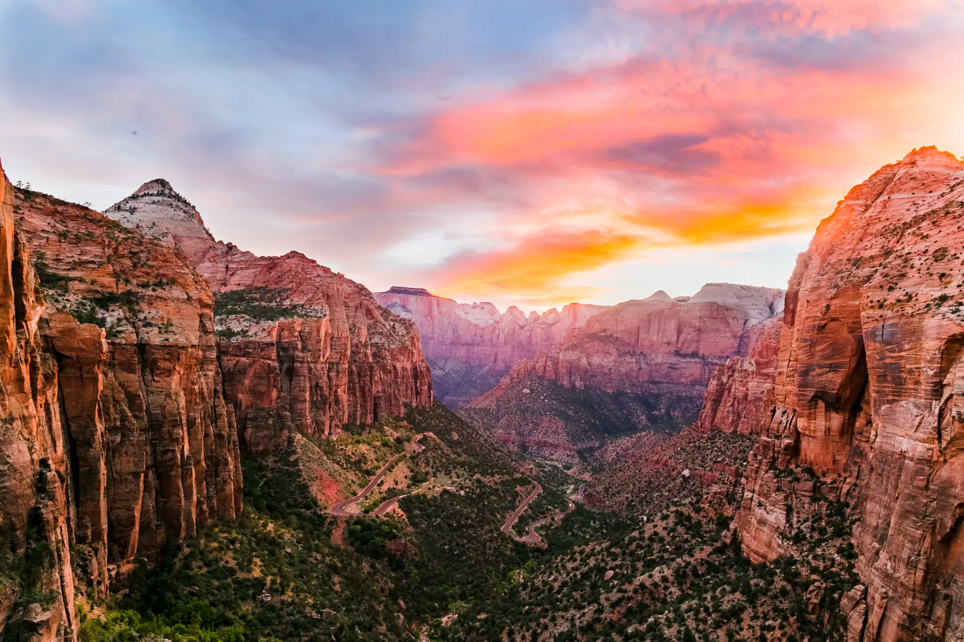 - Gaze at Zion’s massive sandstone cliffs of cream, pink, and red