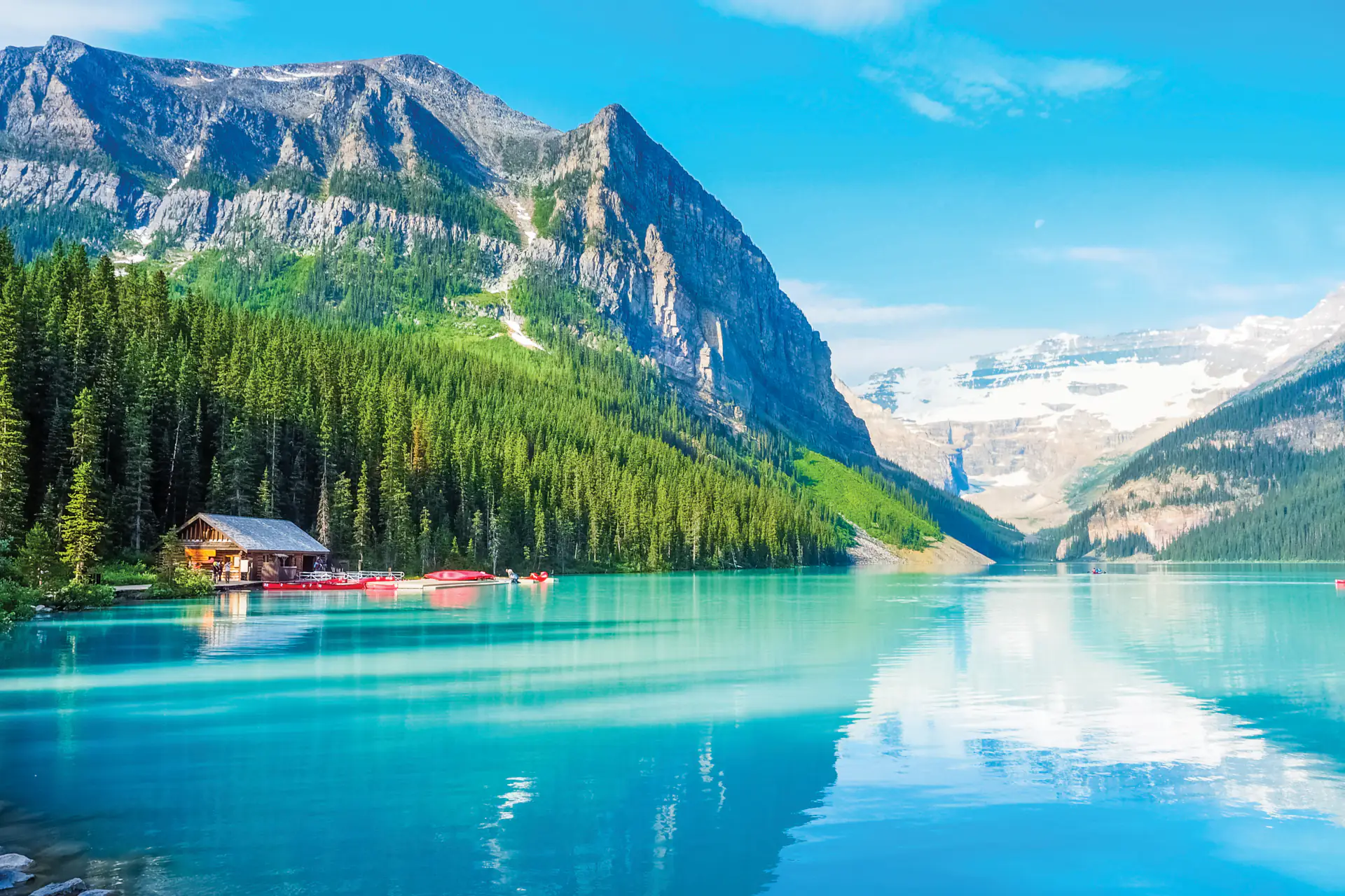 Today you head into the mountains, passing through Banff on the way to Lake Louise. After checking in, you may walk the scenic Lakeshore Trail along the turquoise waters or perhaps visit the historic Fairmont Chateau Lake Louise lobby for alpine views. Overnight in Lake Louise.